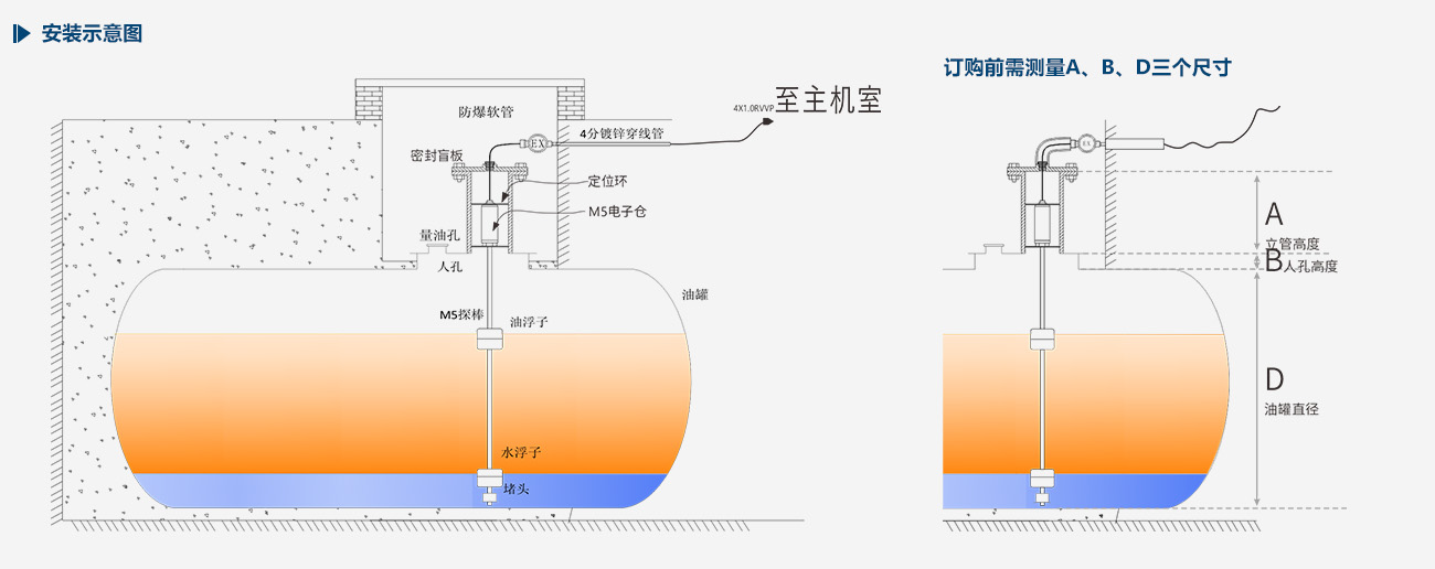 5、对于非标油罐,安装前请确认立管孔径应大于浮子的直径,对加油站要求为大于DN65。