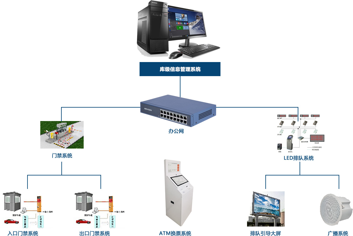 ATM⾃助式排队引导系统由 VStart系列⾃助操作终端、⻔禁系统及排队系统设备组成。系统根据⻋辆排队情况及鹤位分配情况对⻋辆进⾏⾃动排队,并通过 LED ⼤屏、显⽰器、⾳响等设备进⾏提⽰,引导⻋辆有序出⼊库。