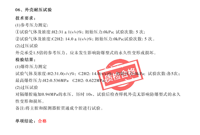 产品经过多轮测试和评估,所检产品均符合GB/T3836.1-2021、GB/T3836.2-2021标准,判定为合格。同时检测表明,我司探测器不仅在防爆性能方面表现出色,在其他各项性能指标上也均达到了或超过了相关标准和要求。