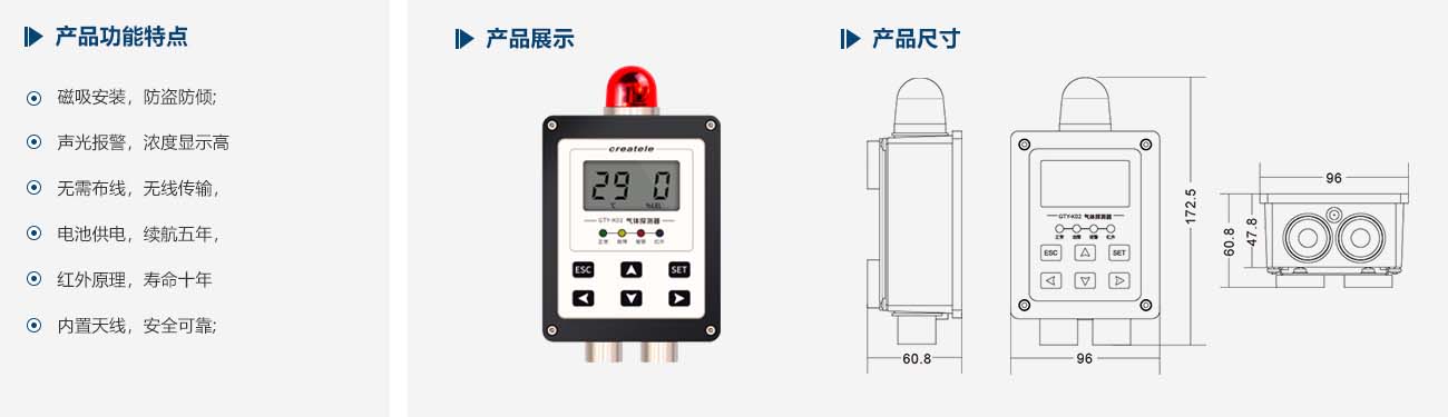 探测器主要用于长期连续检测油站环境空气中的可燃气体含量,自带浓度显示,具有两级超限报警、非法移动报警、倾斜报警、室内控制器联动报警、数据远传等诸多功能。产品可直接吸附或固定安装在加油机、消防箱、防撞柱、灯箱立柱等位置。其即放即用的便捷特性,大大简化了穿管、布线、取电等施工工作,即使在营业期间或施工不便的情况下,也能轻松作业,有效规避了复杂的手续和风险。