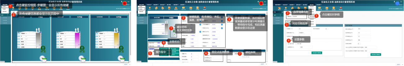 拥有操作画面、单罐图、群罐图等友好界面,支持人工输入数据,清晰展示单个油罐及整个罐区的动态数据。