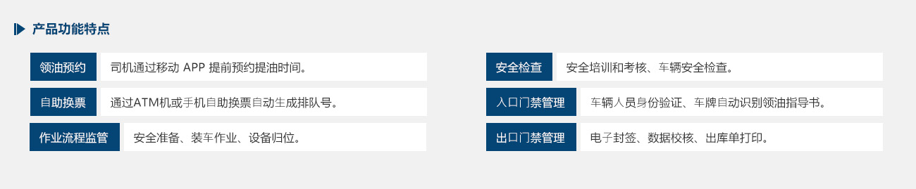 油库⼀卡通系统⾯向企业经营管理和油库提货业务全过程,围绕 ERP 系统实现对现有系统的数据集成,利⽤多项创新信息技术,改造和提升了油品直销业务⽔平,是⼯业化与信息化深度融合的典范案例,从提⾼⼯作效率、降低劳动强度、增加经济效益、业务整合优化、⽇常监控分析等多⽅⾯提升了油库管控⽔平。