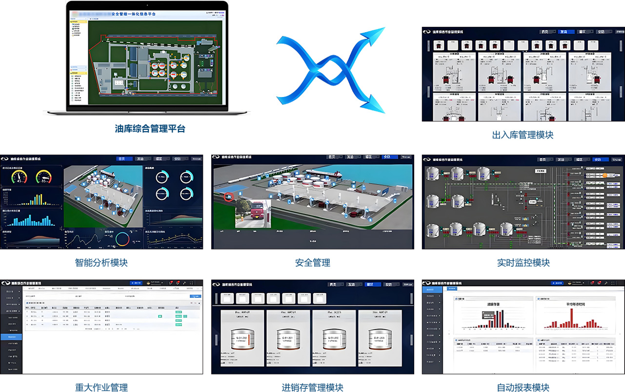 将油库各个⾃动化⼦系统的信息集成处理,实现油库⽣产作业数据的统⼀管理,通过信息的综合利⽤,增强油库的管理效率。对油库各个⾃动化⼦系统关键动作进⾏控制,实现相关⾃动化⼦系统间的联锁保护、联动反应和信息共享。